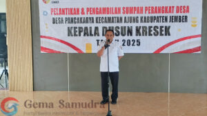Jember, Gemasamudra.com — Pemerintah Desa Pancakarya, Kecamatan Ajung, Kabupaten Jember, menggelar acara pelantikan dan pengambilan sumpah jabatan perangkat desa untuk posisi Kepala Dusun (Kasun) Kresek, pada Rabu (28/10/2025) bertempat di Balai Desa Pancakarya.