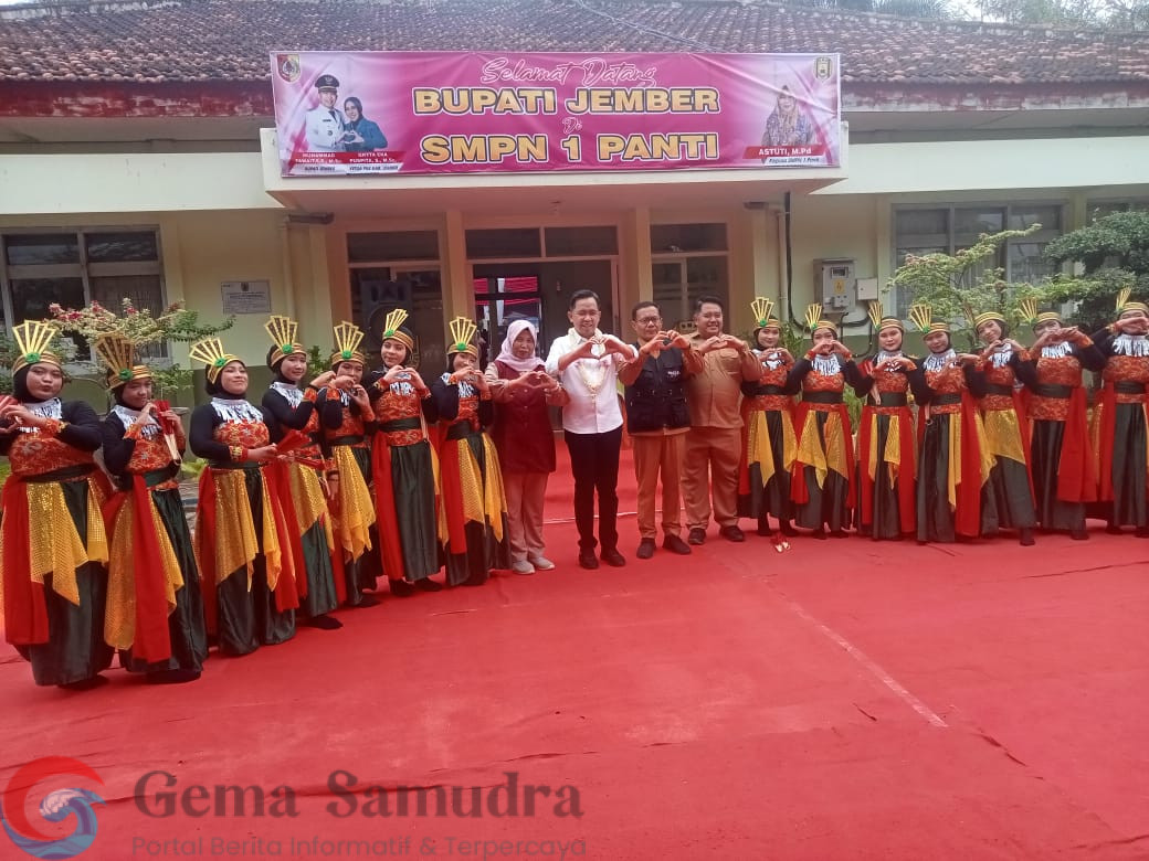 Jember, Gemasamudra.com – Bupati Jember Muhammad Fawait bersama kepala dinas pendidikan kabupaten Jember Drs Hadi Mulyono yang ikuti oleh OPD yang lain Kapolsek Panti berkunjung dan menyelenggarakan kegiatan sosialisasi ramah anak.
