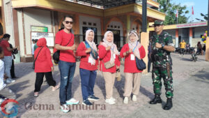 Mereka dengan memakai kostum olahraga yang sekalian membawa kupon undian berhadiah.