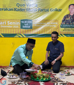 Kota Bandar Lampung, Pimpinan Daerah (PD) Angkatan Muda Partai Golkar (AMPG) Provinsi Lampung menggelar kegiatan tasyakuran sekretariat PD AMPG Provinsi Lampung yang dirangkaikan dengan launching diskusi dalam bentuk ngopi kuning mengusung tema, “Quo Vadis PD AMPG Provinsi Lampung” yang dipusatkan di sekretariat PD AMPG Provinsi Lampung di Jalan Ir. H Juanda nomor 7 B, Pahoman Kota Bandar Lampung pada Senin (15/12/2025) malam.