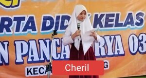 Cheril Salah satu siswi Kelas VI Membacakan Puisi Untuk sang Guru, Membaca dengan Perasaan Sambil Meneteskan Air mata , Membaca dengan tersedu sedu sehingga Membuat Para siswa siswi, guru dan Para orang tua Ikut Menangis.