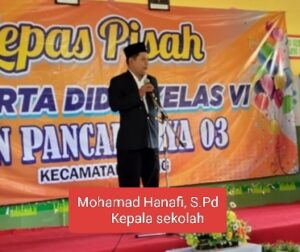 Pada hari ini tanggal 15 Juni 2024 saya Selaku Kepala Sekolah sebagai Perwakilan Guru SDN Pancakarya 03 Menyerahkan Kembali Putra Putri Bapak ibu sekalian, Mereka sudah selesai Menempuh Pendidikan, dan Mereka sudah tumbuh menjadi Jiwa yang dewasa, Ungkapnya.
