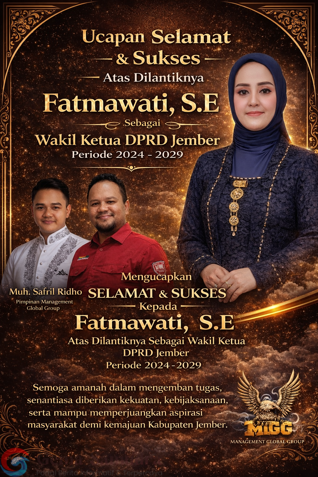 Management Global Group (MGG) Sampaikan Ucapan Selamat atas Dilantiknya Fatmawati, S.E sebagai Wakil Ketua DPRD Jember