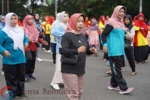 Organisasi Mitra PAUD Kota Metro menggelar kegiatan senam bersama sekaligus memperkenalkan program 7 Kebiasaan Anak Indonesia Hebat di Alun-Alun Taman Merdeka, Minggu (26/01/2025).