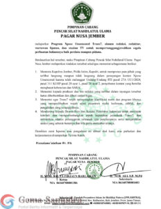 Jember, Gemasamudra.com – Pimpinan Cabang (PC) Pencak Silat Nahdlatul Ulama (PSNU) Pagar Nusa Kabupaten Jember secara resmi melaporkan program Xpose Uncensored Trans7 ke Polres Jember atas dugaan tindak pidana fitnah dan ujaran kebencian.