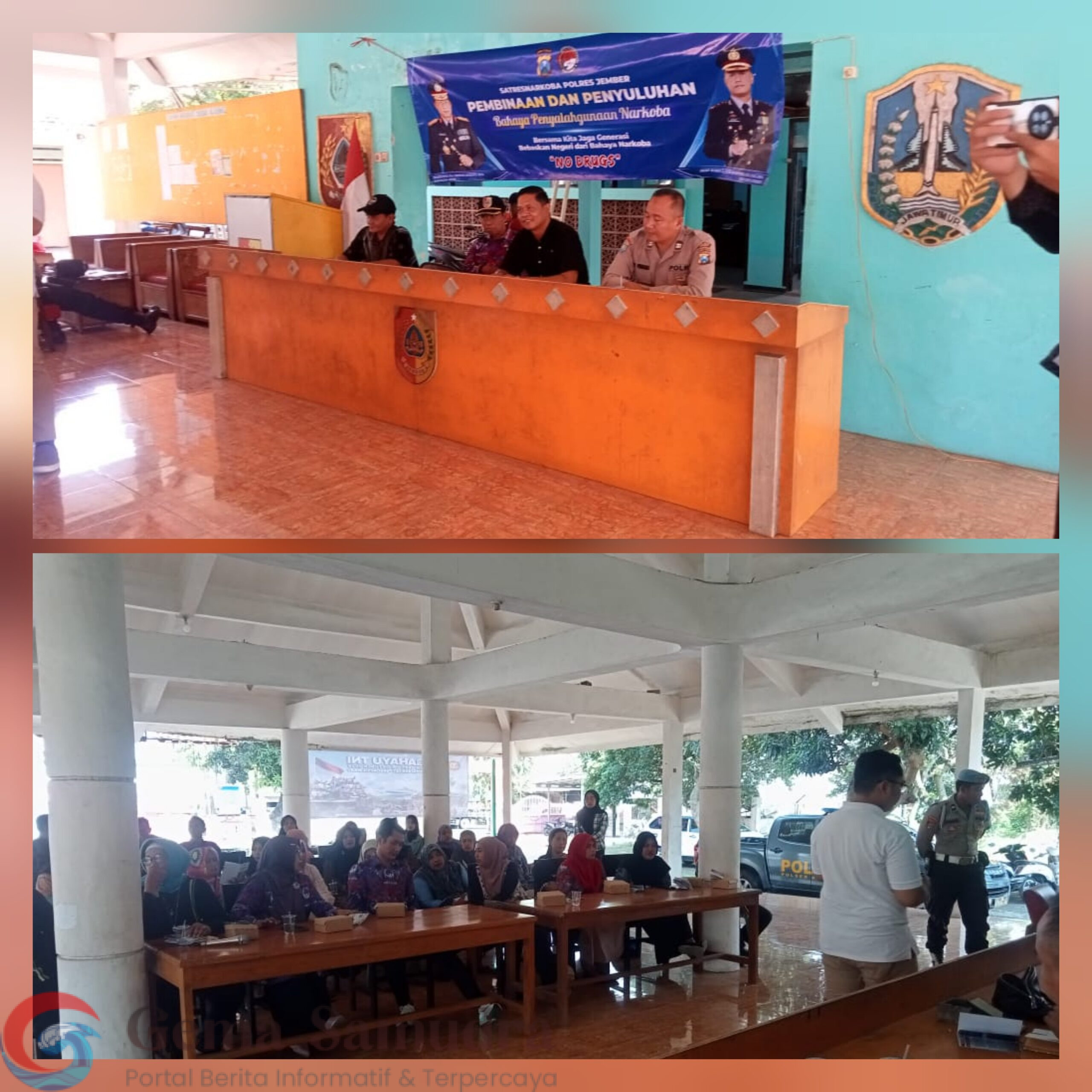 Jember, Gemasamudra.com – Kepala desa Ajung Sri Alam dan perangkatnya bersama anggota sat narkoba polres Jember menyelenggarakan acara pembinaan dan penyuluhan terhadap bahaya penggunaan narkoba bersama masyarakat desa Ajung.