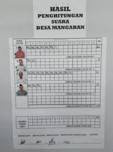 Hasil Perolehan suara pemungutan suara pemilihan K Blok / Ulu ulu Desa Mangaran, hari Sabtu Tanggal 18 November 2023, Periode 2023/2028.