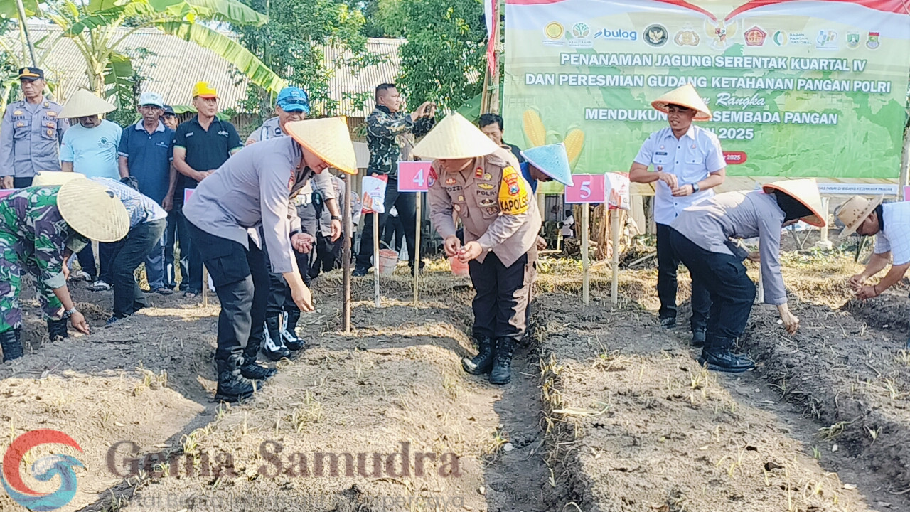 Jember, Gemasamudra.com – Dalam rangka mendukung program swasembada pangan nasional, Polres Jember melaksanakan kegiatan penanaman jagung serentak yang dipusatkan di Desa Mangaran, Kecamatan Ajung, Kabupaten Jember, pada Rabu (8/10/2025) pukul 15.00 WIB hingga selesai.