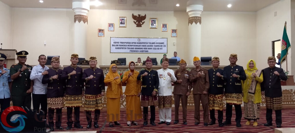 TULANG BAWANG – Bupati Tulang bawang Drs. Hi. Qudrotul Ikhwan, M.M menghadiri rapat paripurna Dewan Perwakilan Rakyat Daerah (DPRD dalam rangka memperingati HUT Tulang bawang ke-28 sekaligus hari jadi Provinsi Lampung ke-61, Kamis (20/3/2025).