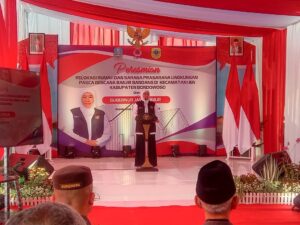 BONDOWOSO – Administratur Perum Perhutani Kesatuan Pemangkuan Hutan (KPH) Bondowoso Ir. Ronny Merdyanto S.Hut bersama Anton Sujarwo S.Hut Wakil Administratur Kepala Sub Kesatuan Pemangkuan Hutan (KSKPH) Bondowoso Selatan serta Horsis Asper KBKPH Sukosari menghadiri peresmian relokasi rumah dan sarana prasarana lingkungan oleh Gubernur Jawa Timur Khofifah Indar Parawansa bagi masyarakat yang terdampak bencana bajir di Kecamatan Ijen Kabupaten Bondowoso Kamis (21/09/23)