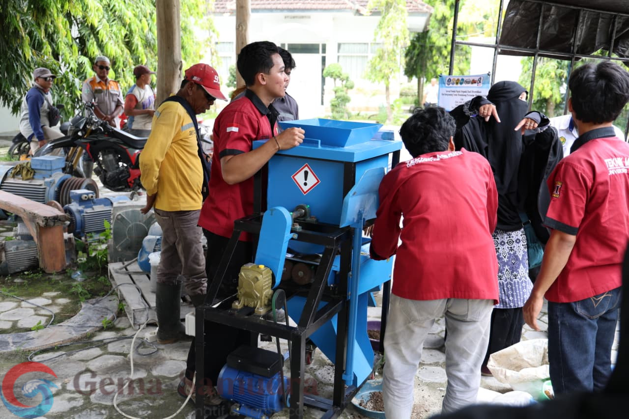 Rina Lestari menjelaskan bahwa mesin granulator ini dirancang untuk memanfaatkan sisa batu gamping yang selama ini belum optimal pemanfaatannya. Limbah tersebut kemudian dikombinasikan dengan bahan organik untuk menghasilkan pupuk granul yang ramah lingkungan dan bernilai ekonomi.