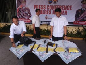 Tim Patroli Polres Jember bersama Polsek Ajung berhasil mengamankan sekelompok orang yang dicurigai sebagai tempat potensial terjadinya kerawanan. Setelah dilakukan pemeriksaan, sejumlah senjata tajam, termasuk clurit dan golok, berhasil diamankan dari sejumlah anggota kelompok tersebut.